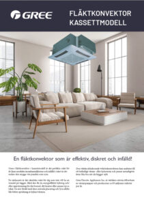 Gree:s fläktkonvektor i kassettmodell är det perfekta valet för de ljusa nordiska inomhusmiljöerna och infälld i taket är det endast den snygga vita panelen som syns.